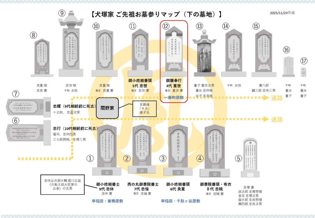 どの墓石にどのご先祖さまがいらっしゃるのかをまとめました。